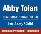 “Abby Tolan is a dedicated public servant who cares deeply about every Westport child and a is champion for special education and inclusive education for every student.”