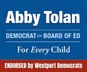 abbytolanboe@gmail.com. Paid for by Abby Tolan for Board of Education. Lee Goldstein, Treasurer. Approved by Abby Tolan.